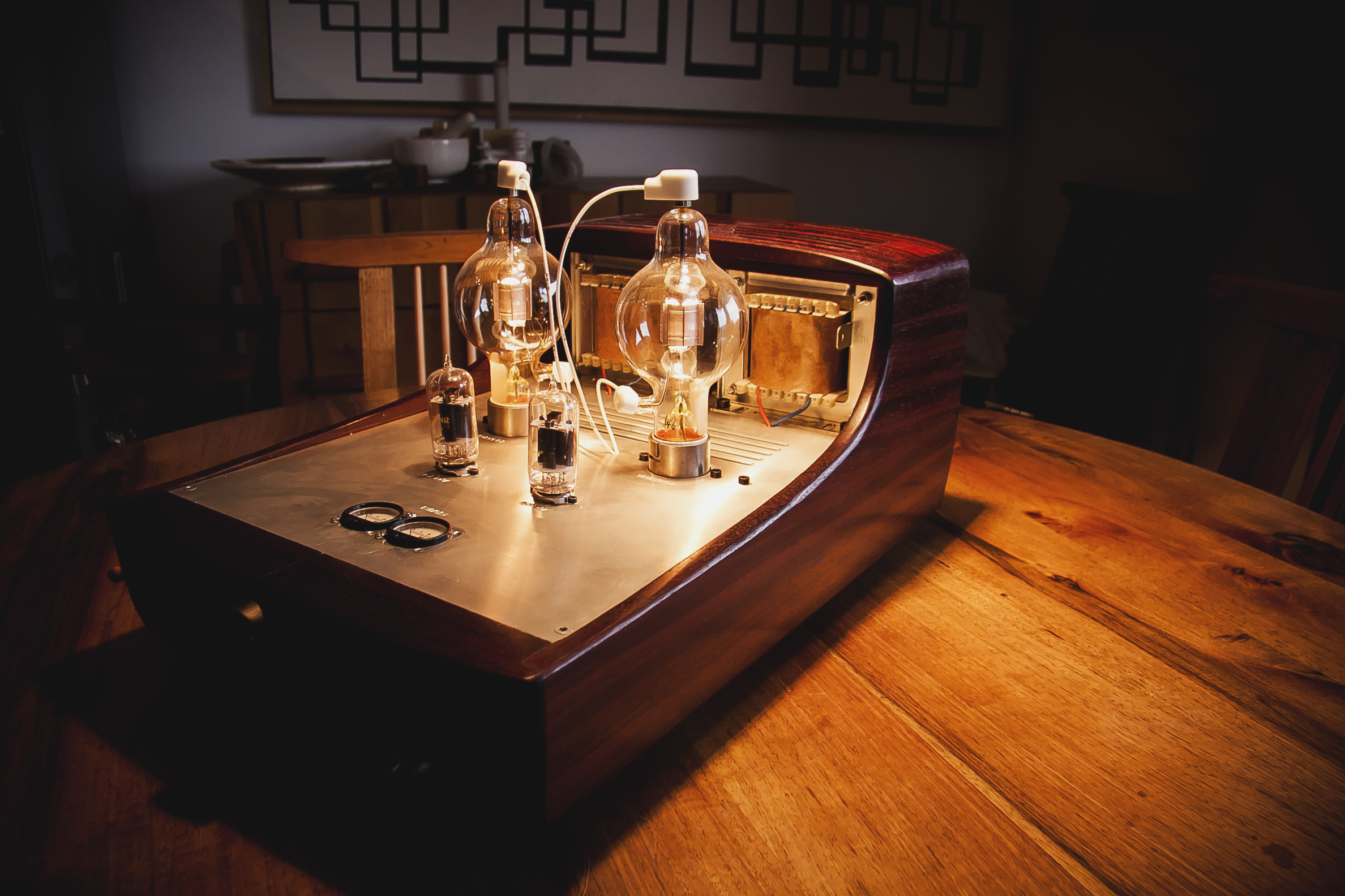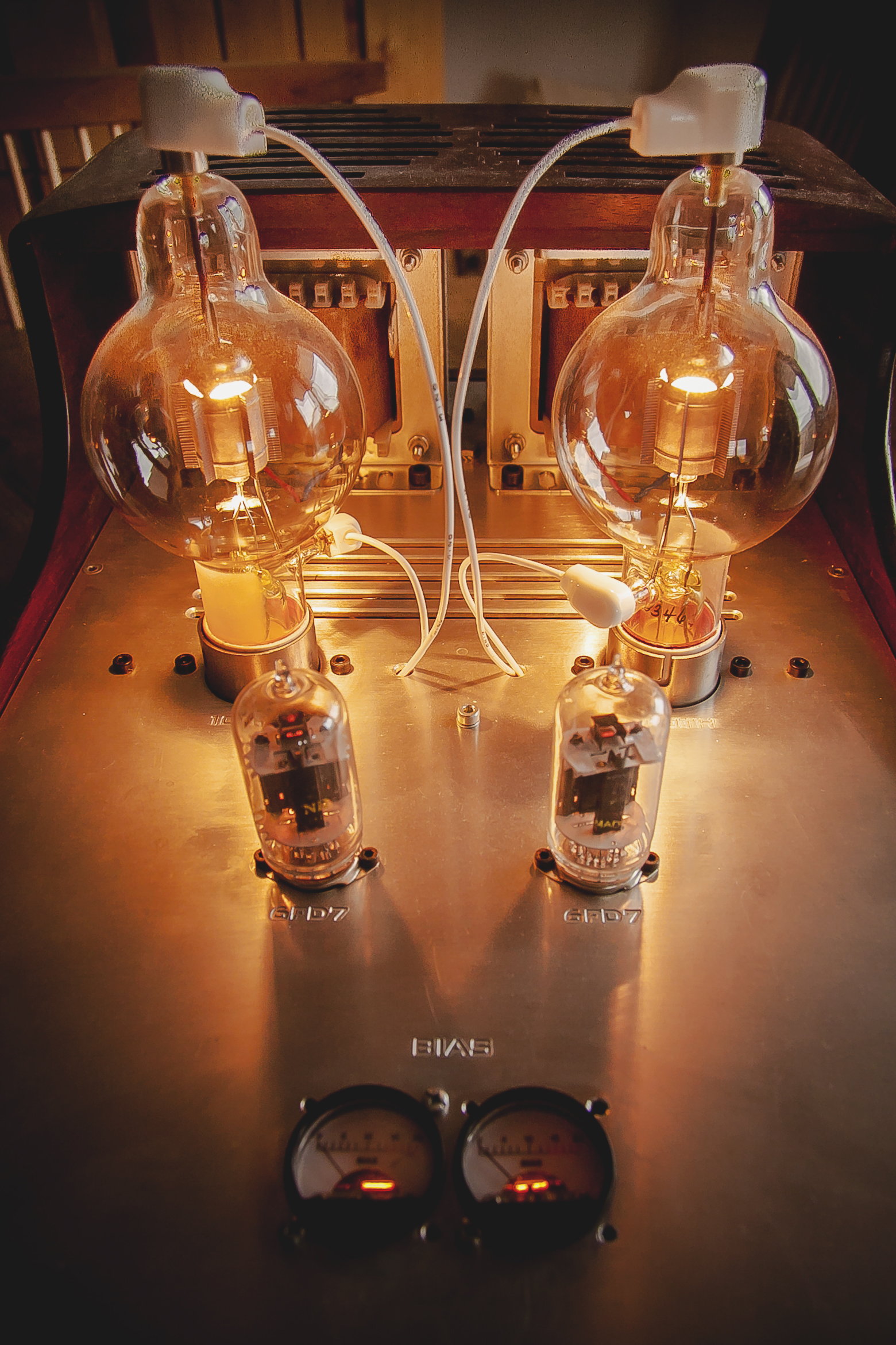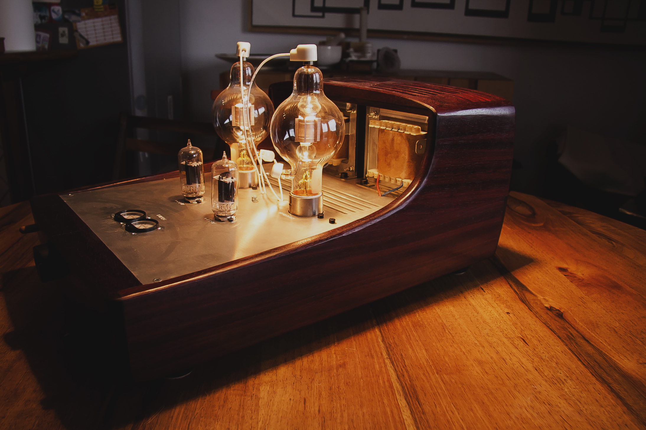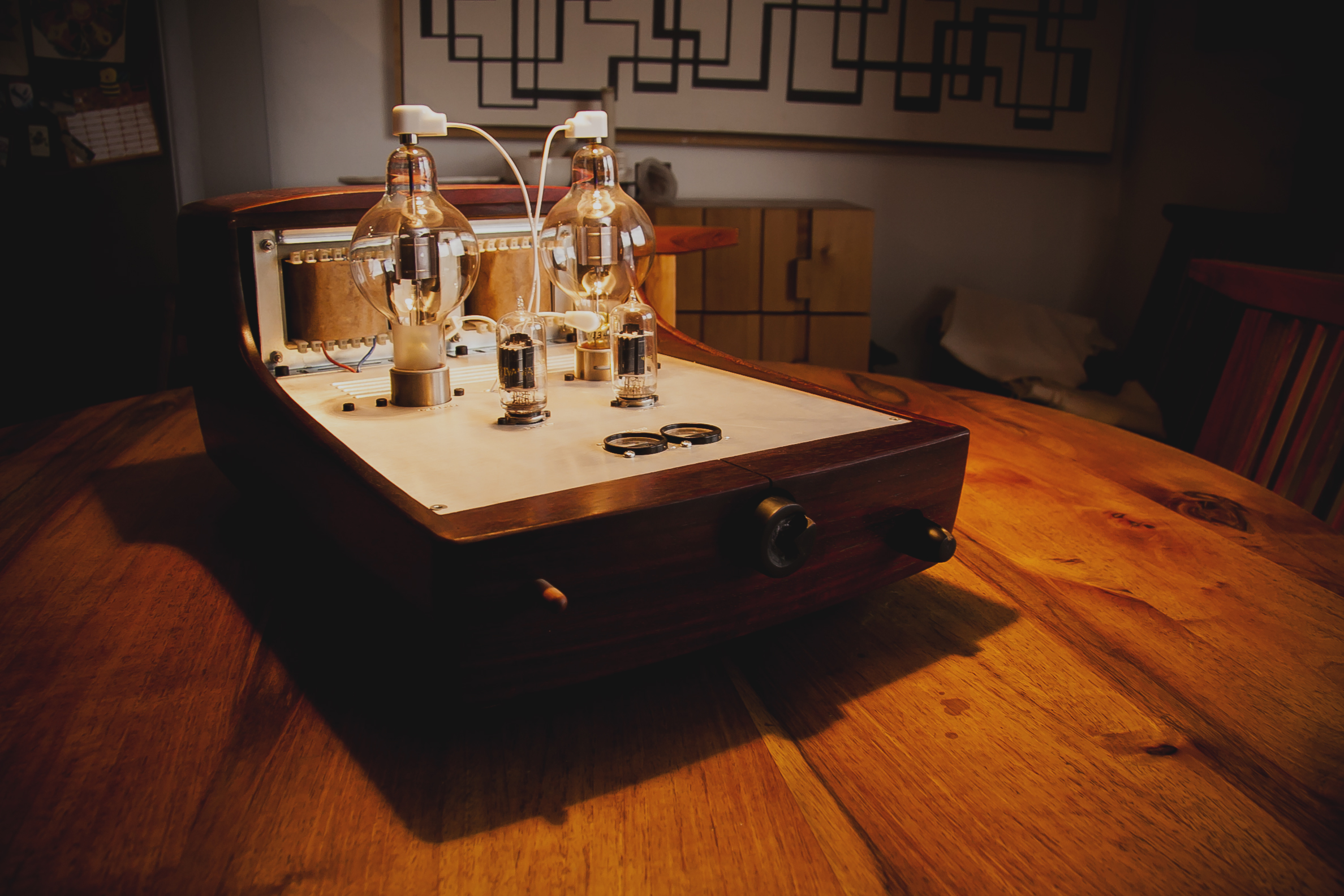 The amplifier in such embodiment is unique worldwide. Assembled with rosewood knobs and ebony potentiometers. The case and parts are completely handcrafted, knobs, potentiometer buttons and every little thing is finished in fine grinding to a high gloss and coated with a special solution, (which is the secret masters) for high brilliance and wood naturalness. The robust case provides the minimal impact of vibrations on the lamps and thus reduces any possibility of microphony. The amplifier uses the bias control, so you can follow the life of the tubes (for this type of tube projected lifespan is almost 10,000 hours, unlike ordinary tubes which is around 2,000). Output transformers as well as the power transformer are oversized eliminating the chance for overload providing higher quality sound. The lamps are TH100 with thorium-tungsten, more persistent than conventional lamps used for tube amplifiers.
