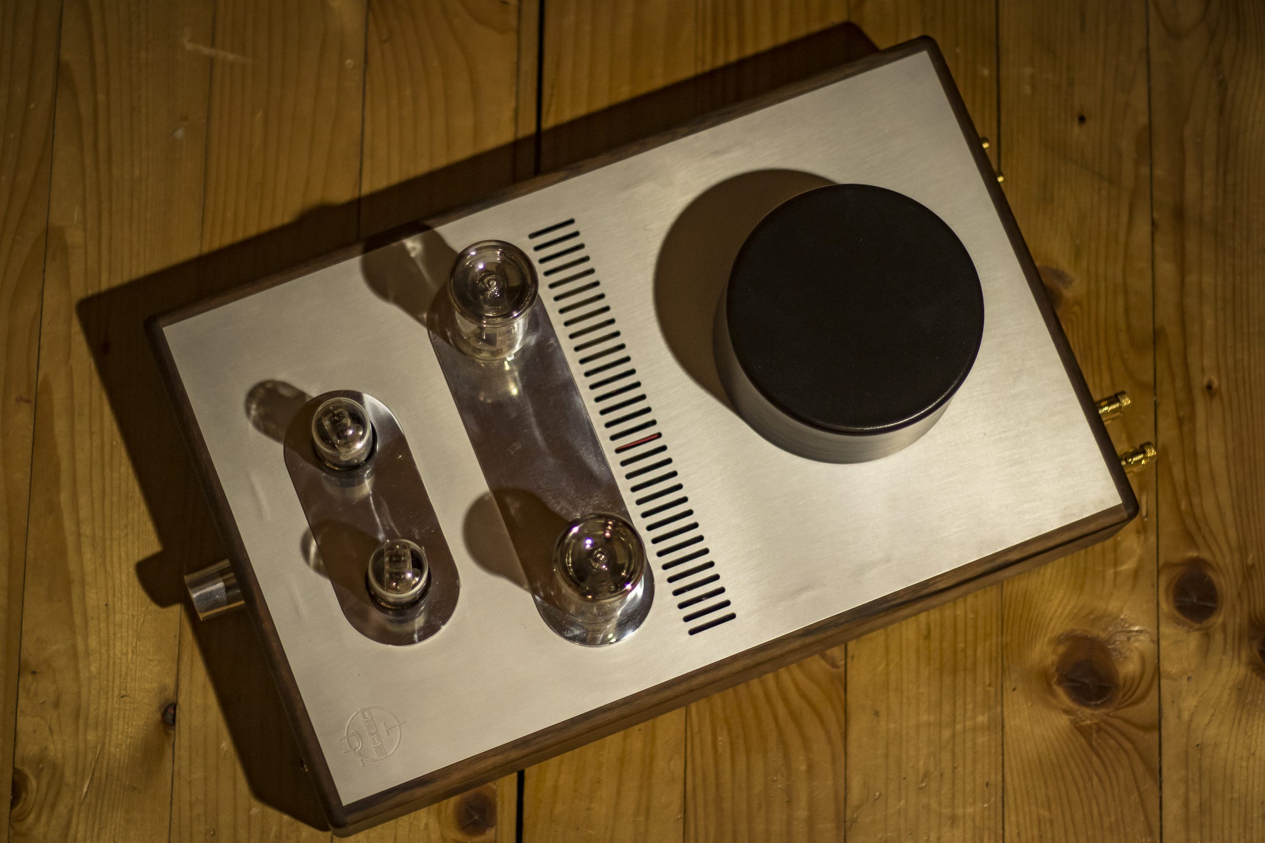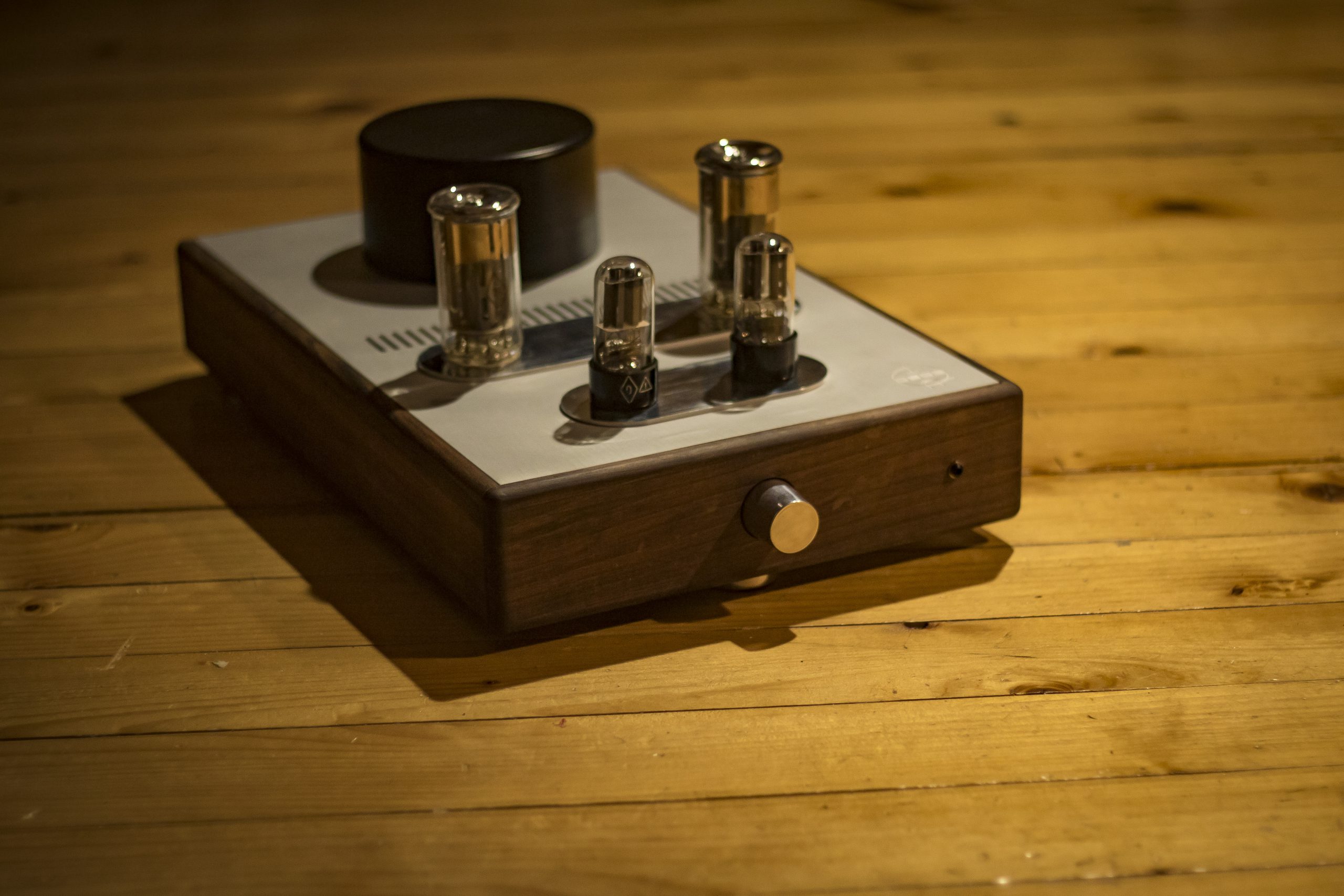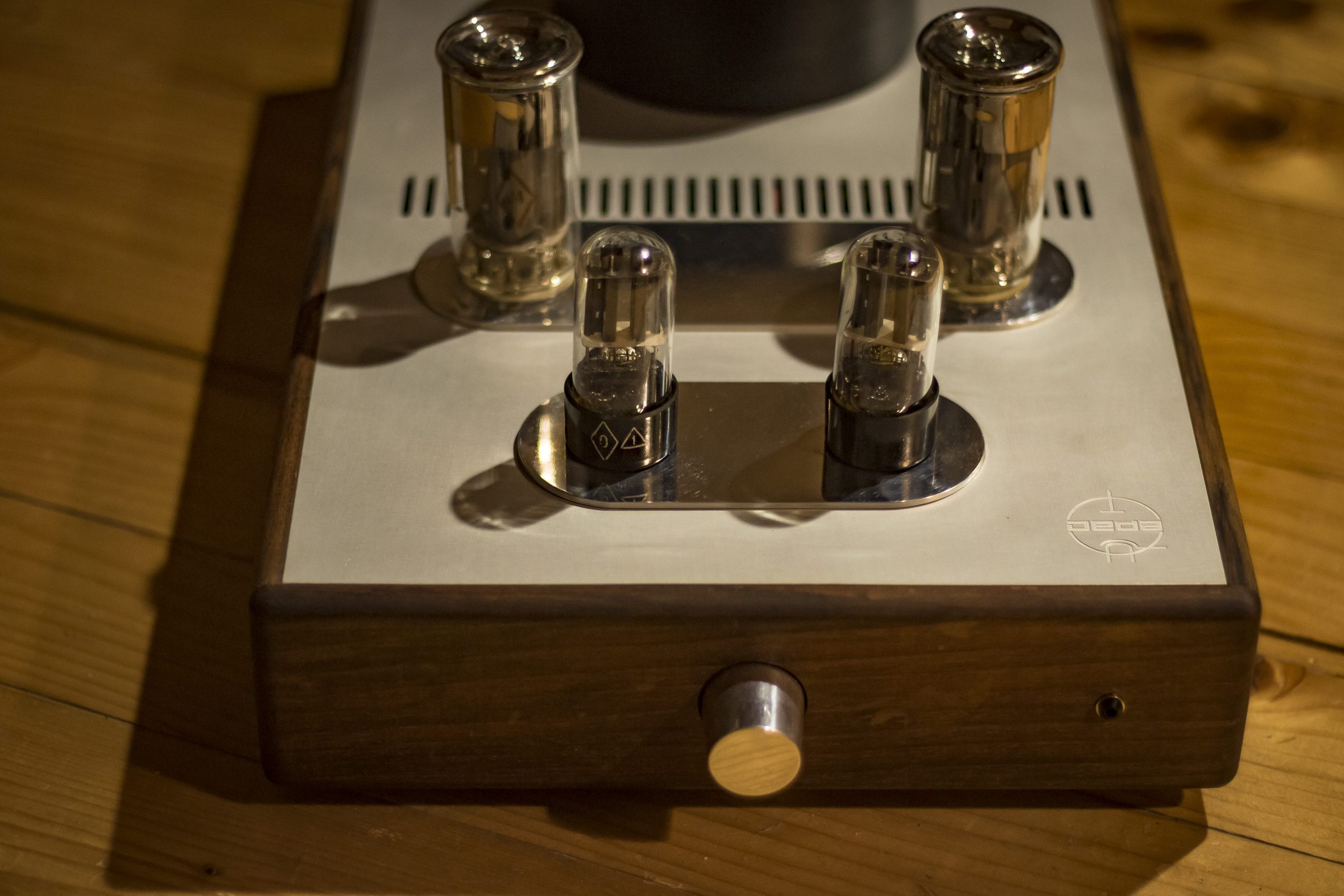 The amplifier is manufactured by the Deda tube audio, therefore each is unique piece of art. The housing is made of walnut wood grown on the family property and naturally dried over 20 years. In addition to meeting high aesthetic standards, from a technical point walnut is a durable material, not susceptible to bending over time, unlike artificial or insufficiently dried materials. Its massiveness and resistance to vibration neutralizes the surrounding vibrations and their effect on the electronic tubes operation.