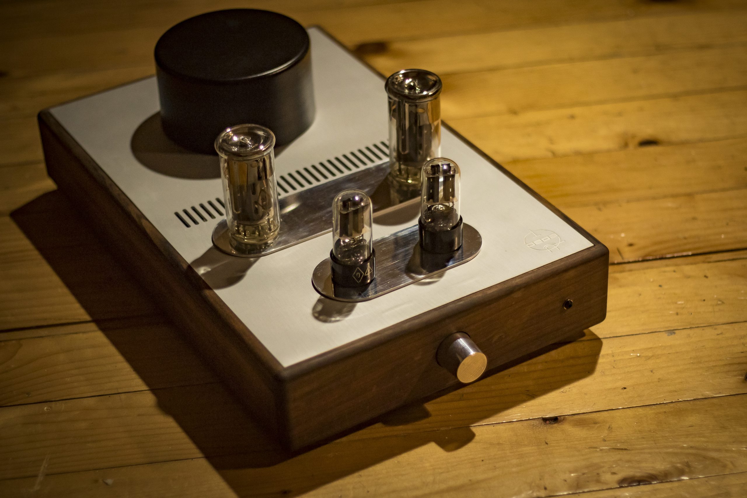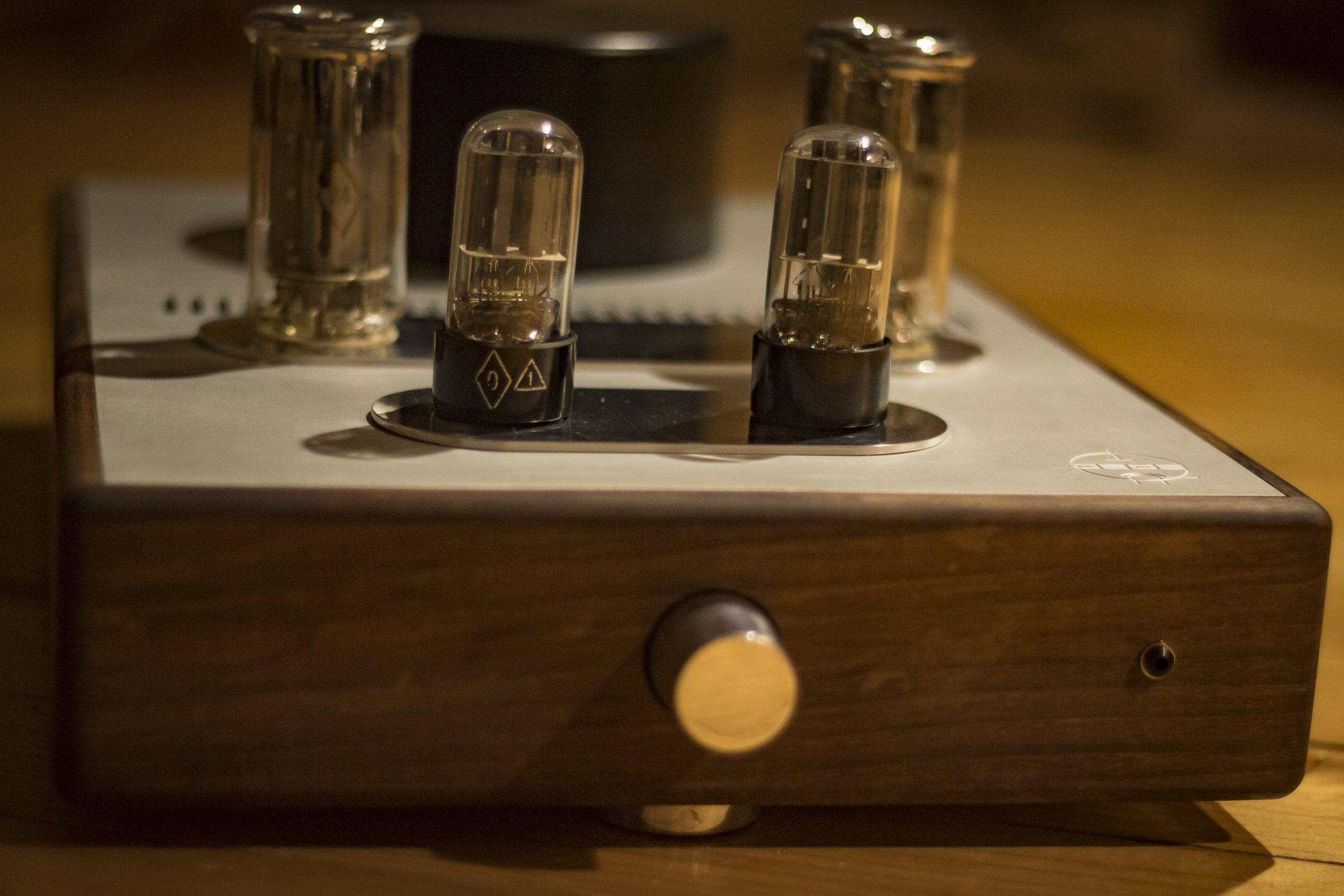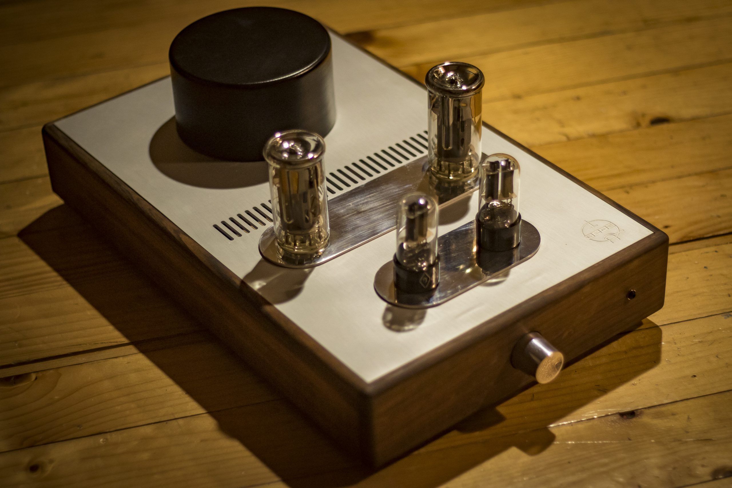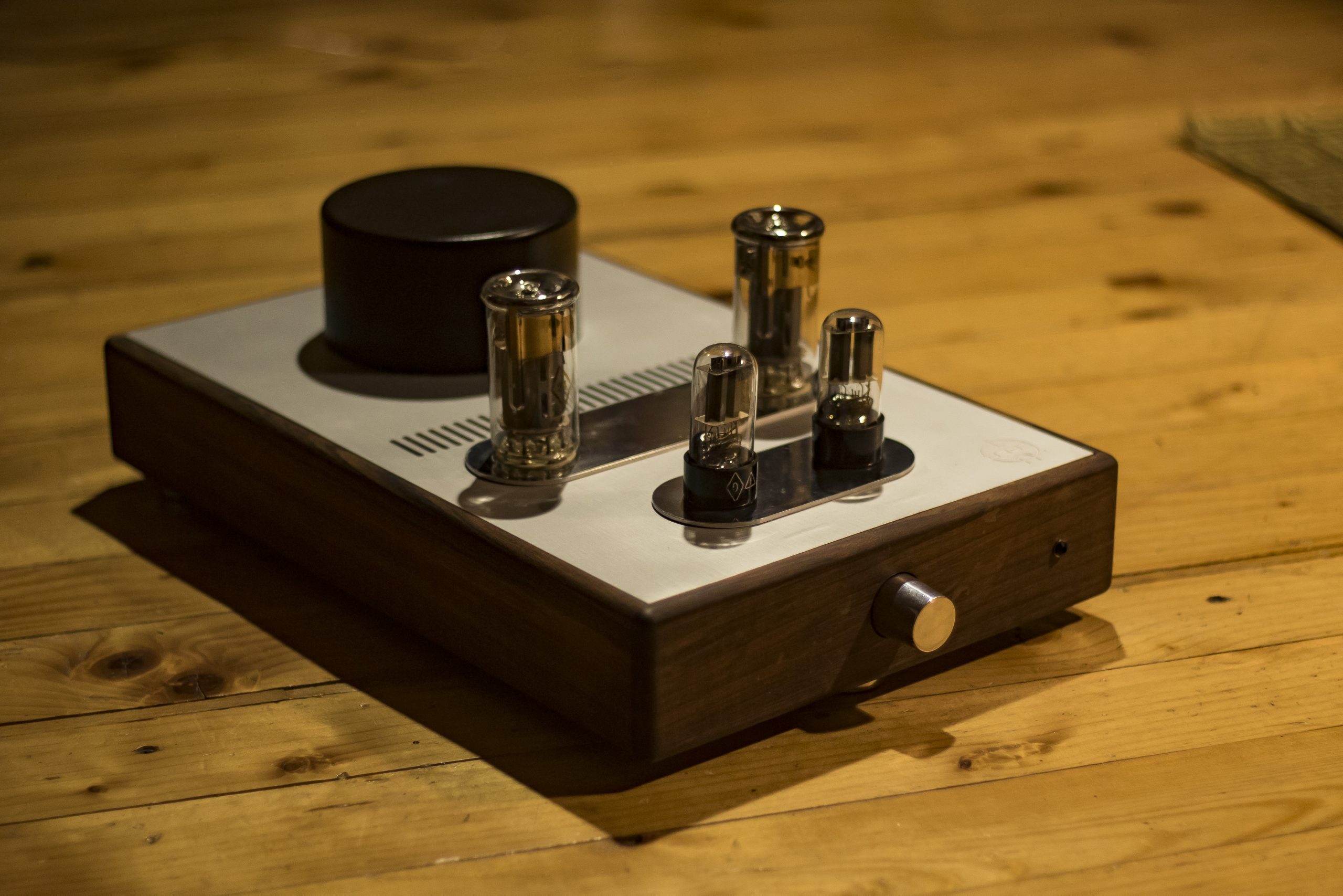 The amplifier is manufactured by the Deda tube audio, therefore each is unique piece of art. The housing is made of walnut wood grown on the family property and naturally dried over 20 years. In addition to meeting high aesthetic standards, from a technical point walnut is a durable material, not susceptible to bending over time, unlike artificial or insufficiently dried materials. Its massiveness and resistance to vibration neutralizes the surrounding vibrations and their effect on the electronic tubes operation.